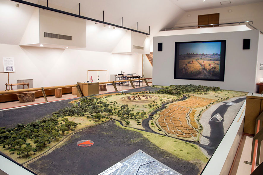 館内では弥生時代の生活道具や農具の展示に加え、当時の集落や水田の様子を再現した資料も見ることができます。