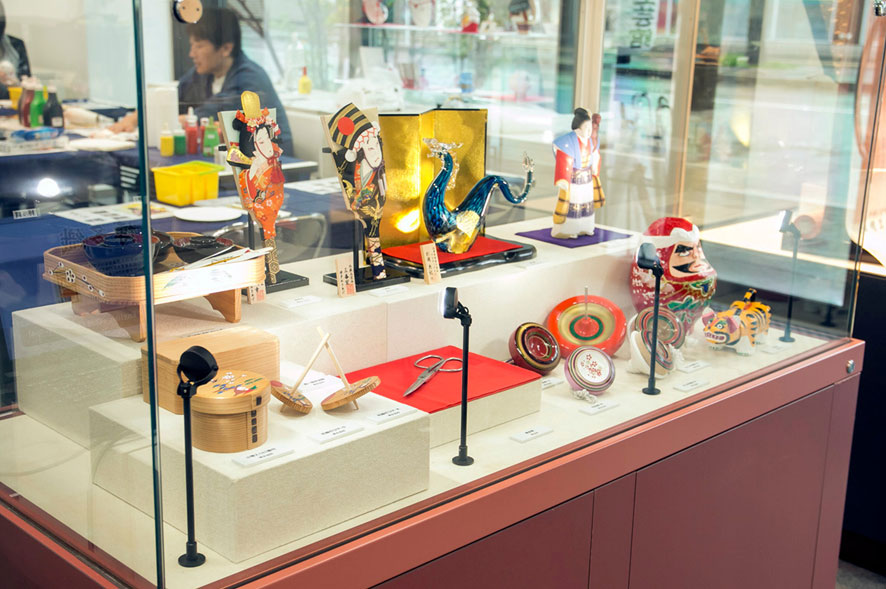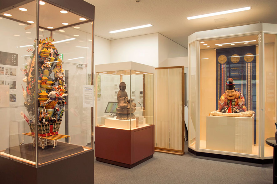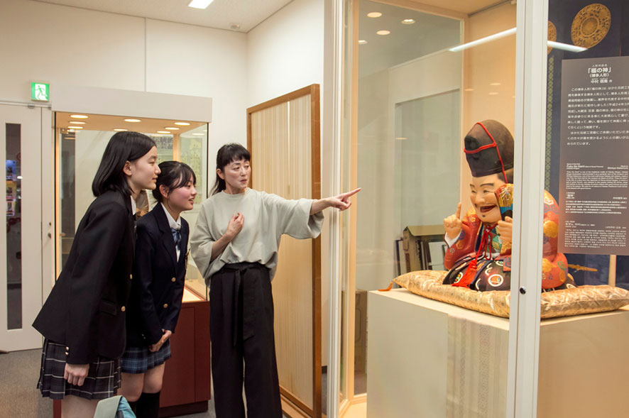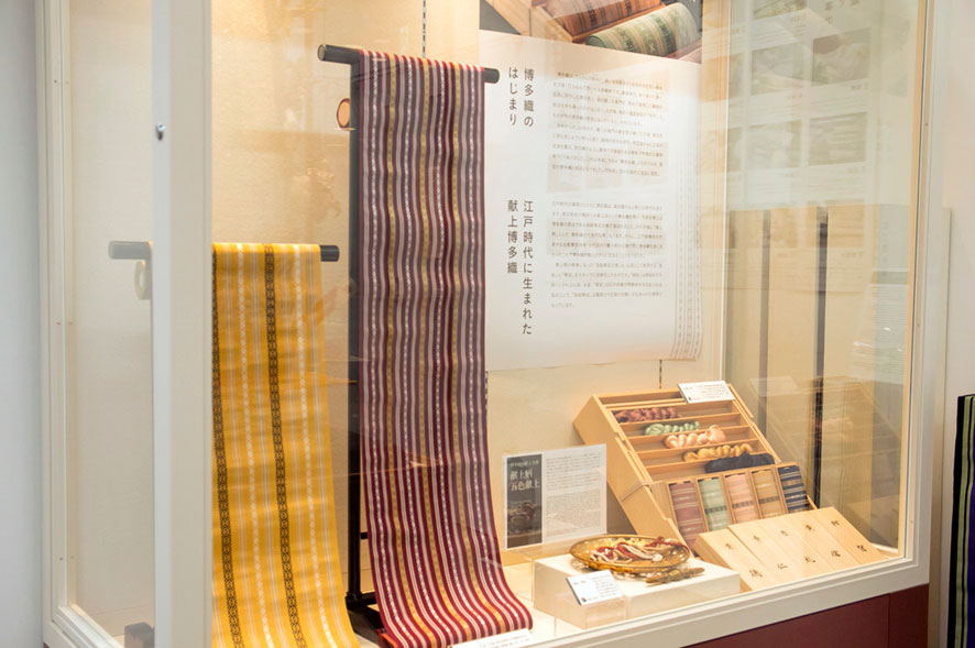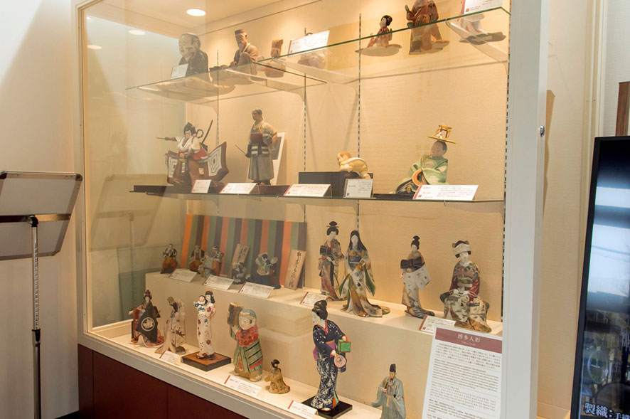 館内では、福岡・博多を代表する伝統工芸である博多織や博多人形を中心に、多彩な作品を見ることができます。
