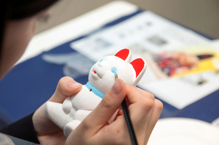 素焼きの人形に絵の具で色を付けながら、自分だけのオリジナル作品を制作します。人形の表情や色合いを考えながら作業することで、伝統工芸の魅力や職人の技術を体感できます。