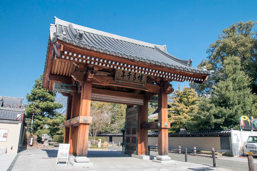 鎌倉時代の僧である円爾(えんに・後の聖一国師)が、中国からうどんや饅頭の製法を日本に伝えた場所とされています。また、博多祇園山笠発祥の地としても知られています。