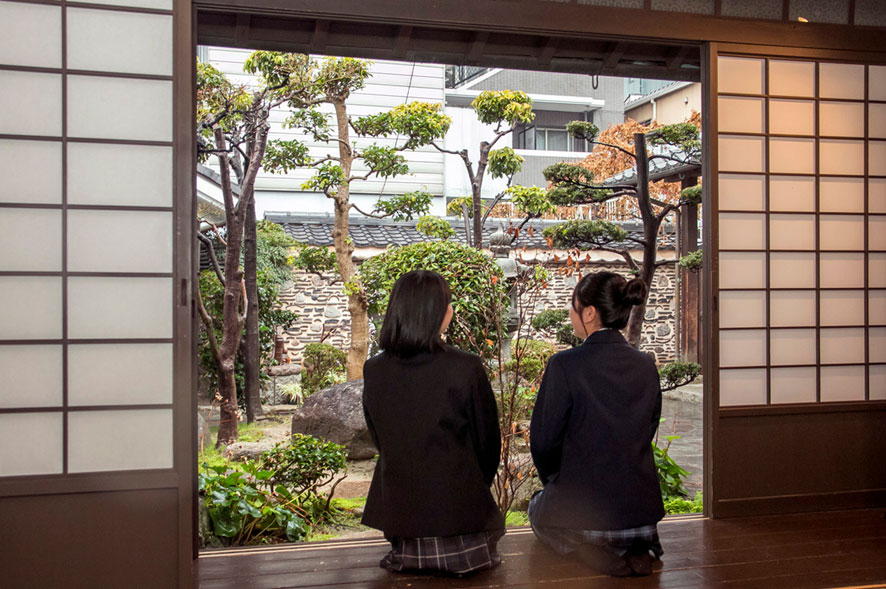 旧家屋の畳の部屋や日本庭園のある落ち着いた空間で、まち歩きの途中に少し休憩することもできます。